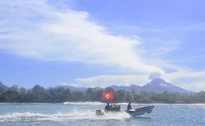 Bagana viewed from offshore, September 2019Bagana, arguably the most active volcano in Papua New Guinea, has been in a state of near-continuous eruption for over 150 years, with activity dominated by sluggish extrusion of thick blocky lava flows. If current extrusion rates are representative, the entire edifice may have been constructed in only 300–500 years. Bagana exhibits a remarkably high gas flux to the atmosphere, with persistent sulfur dioxide (SO2) emissions of several thousand tons per day. This combination of apparent youth and high outgassing fluxes is considered unusual among persistently active volcanoes worldwide. We have used satellite observations of SO2 emissions and thermal infrared radiant flux to explore the coupling of lava extrusion and gas emission at Bagana. The highest gas emissions (up to 10 kt/day) occur during co-extrusive intervals, suggesting a degree of coupling between lava and gas, but gas emissions remain relatively high (~2,500 t/d) during inter-eruptive pauses. These passive emissions, which clearly persist for decades if not centuries, require a large volume of degassing but non-erupting magma beneath the volcano with a substantial exsolved volatile phase to feed the remarkable SO2 outgassing: an additional ~1.7–2 km3 basaltic andesite would be required to supply the excess SO2 emissions we observe in our study interval (2005 to present). That this volatile phase can ascend freely to the surface under most conditions is likely to be key to Bagana’s largely effusive style of activity, in contrast with other persistently active silicic volcanoes where explosive and effusive eruptive styles alternate.